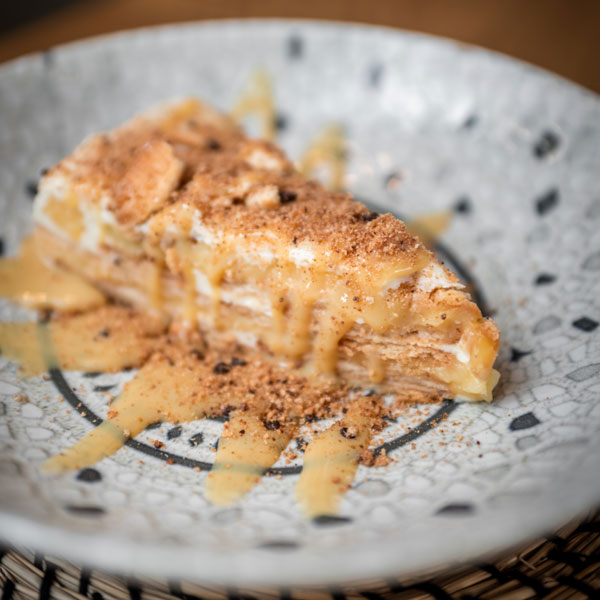 / Tarta de chocolate blanco con galleta y natilla